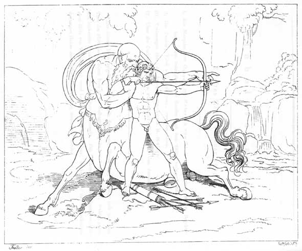 Blatt mit Kupfer <weißes Papier> verso: Feodor Iwanow, Kupfer o. T. <Chiron unterrichtet Achilles im Bogenschießen>